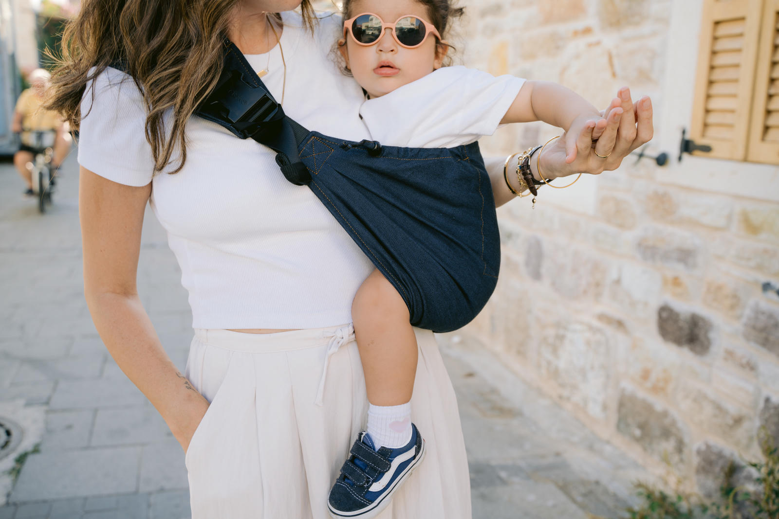 Hecho de algodón orgánico certificado, este portabebés es perfecto para las subidas y bajadas del día a día. Desde los 6 hasta los 36 meses (8–22 kg), se coloca fácil y rápido gracias a sus hebillas seguras. Ligero, cómodo y compacto — ideal para paseos, mandados y la vida urbana.